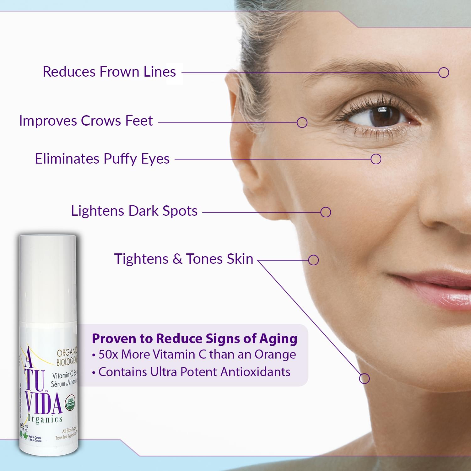 Apply 2-3 drops of serum to your face and neck concentrating around eye area and lips.